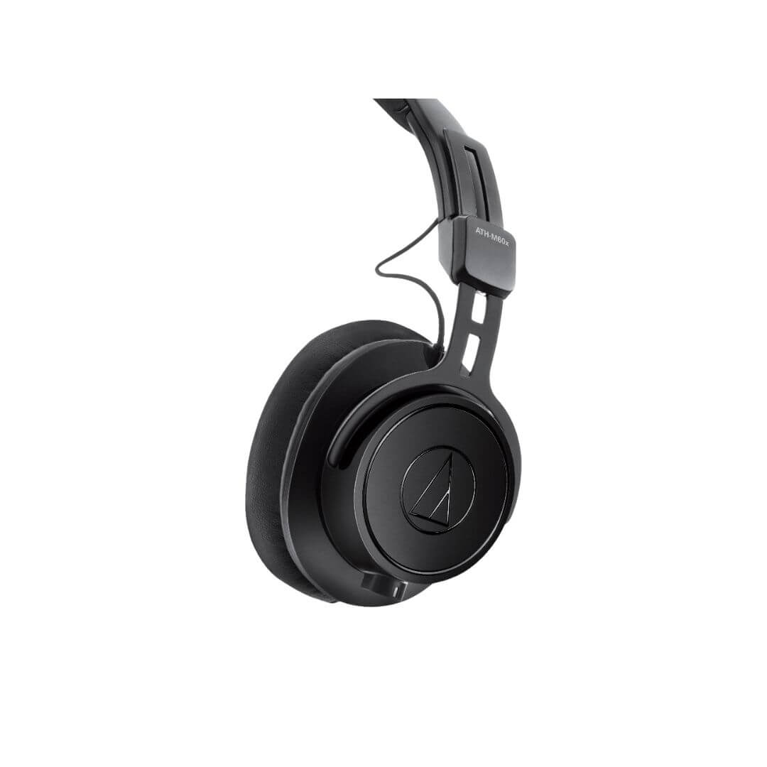 Audio Technica ATH-M60x Professional Studio Monitor Headphones. Engineered for studio, broadcast, and mobile use, the ATH-M60x on-ear professional monitor headphones feature the same proprietary 45 mm large-aperture drivers as the iconic ATH-M50x, ensuring outstanding clarity across a wide frequency range with precise bass. Their low-profile, closed-back, on-ear design offers superb sound isolation and a secure fit, while the memory foam earpads and headband provide superior comfort and long-lasting durability.