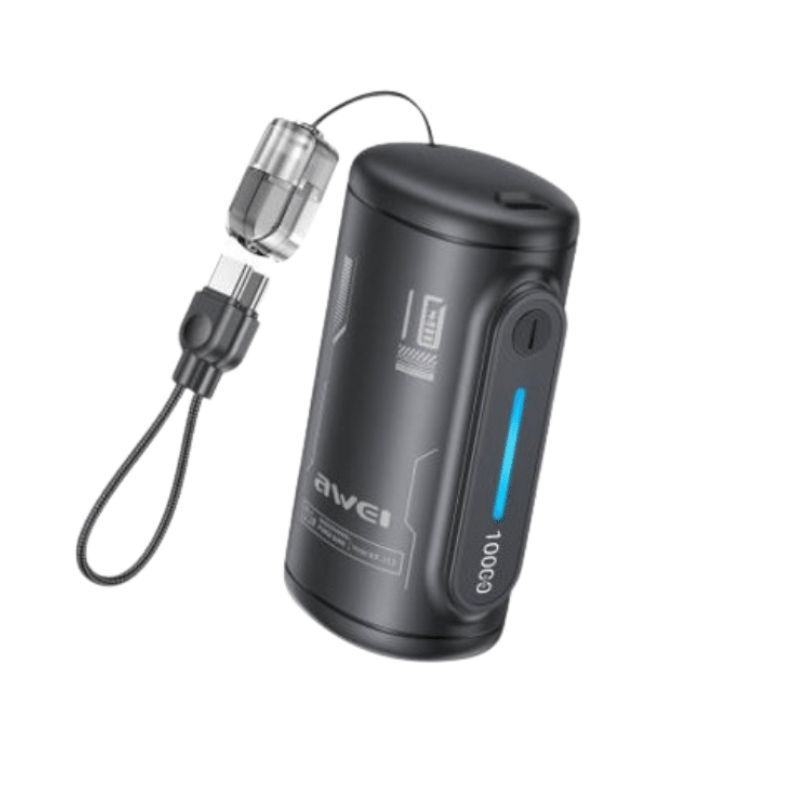 Awei WP‑117 10000mAh 22.5W Mini Power Bank. High‑density lithium polymer battery provides multiple full charges for most smartphones (e.g., 2‑3 charges for iPhone 15, 2‑2.5 charges for Samsung Galaxy S24). Ultra‑compact dimensions (82.1 × 47.5 × 36 mm) – easily fits in the smallest pockets.