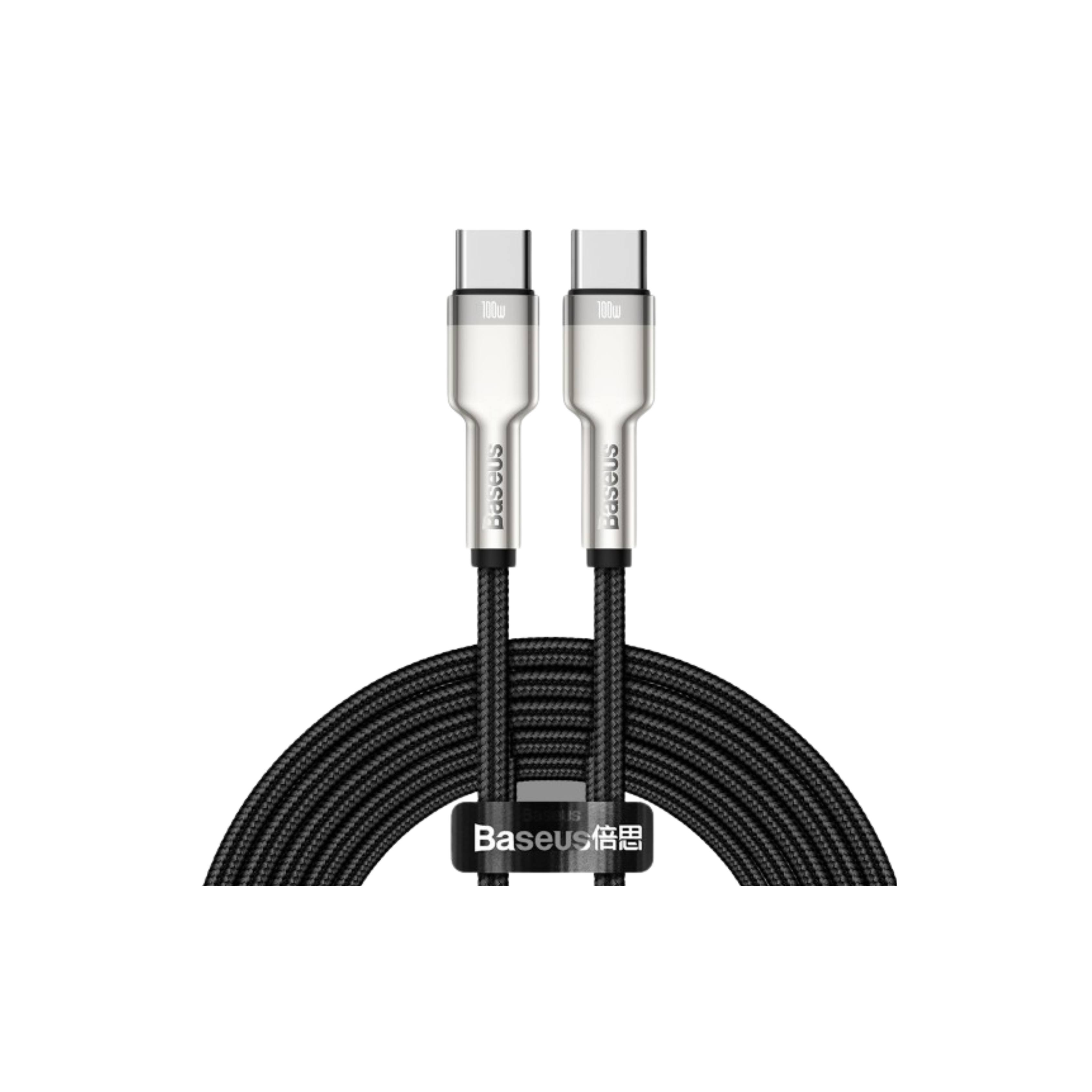 Baseus Cafule Series Metal Data Cable Type-C to Type-C 100W 2M. All-metal connectors maintain a constant temperature, you can use your phone while charging and do not need to worry about hot connectors to damage your phone battery any longer, enjoy a safer and faster charging experience. This connector with seamless design perfectly matches the charging port of phones, solid and easy to use.
