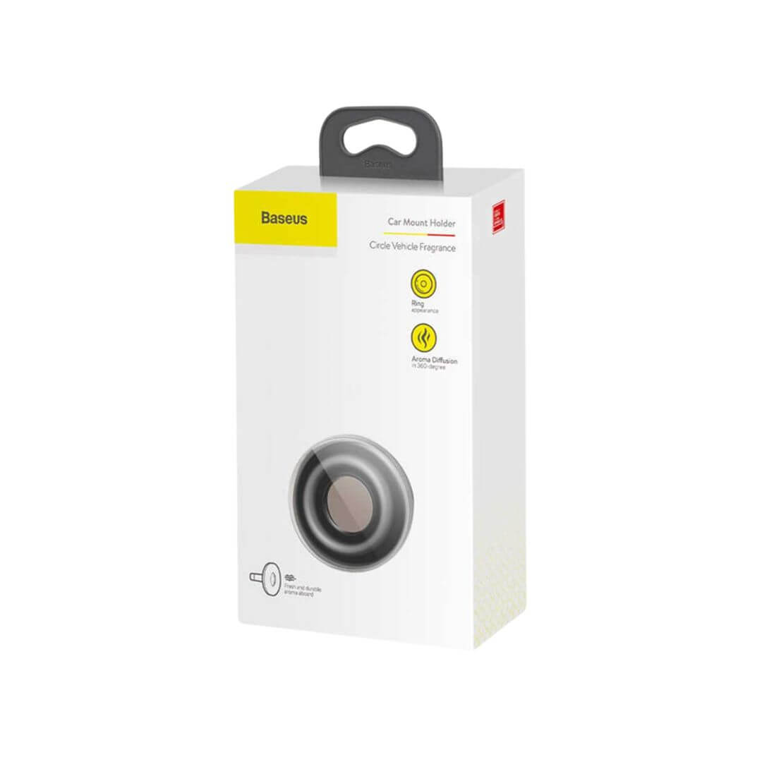 Baseus Circle Vehicle Fragrance.The circular design in light metal is handy and easy to install. The aroma can be diffused circularly in 360-degree, with a large aroma diffusion area. Giving out 4 complimentary pieces of fragrance, durable aroma aboard.