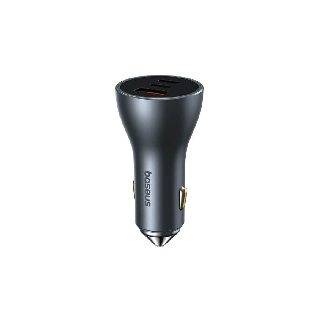 Baseus Golden Contactor Pro Car Charger 65W USB with Dual Type-C. 65W 3-Port Output: USB+Type-C*2 three-port output, supports PD and QC simultaneous fast charging, satisfying charging needs for various devices.