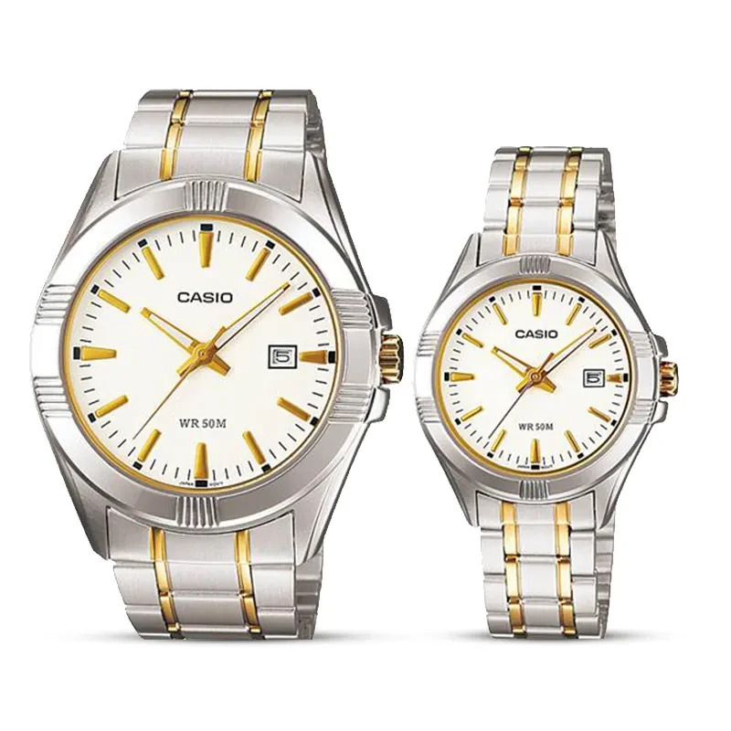 Casio MTP/LTP-1308SG-7AVDF Two-tone Couple Watch. This Casio Men’s Watch is a tasteful and elegant timepiece, combining classic two-tone styling with timeless sophistication. The MTP-1308SG-7AVDF features a stainless steel band and deep gray body, designed to turn heads and make subtle statements. The watch is built with precision and durability in mind, providing an eye-catching everyday accessory for any man.