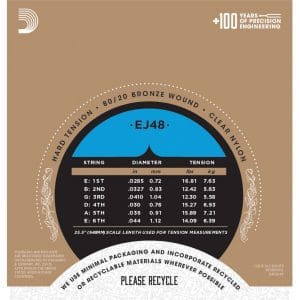 D’Addario EJ48 80/20 Bronze Classical Guitar Strings. EJ48, hard tension, features 80/20 bronze wound basses for bright acoustic tone, increased resistance and strong projection. Pro-Arte, the world’s most popular classical strings are D’Addario’s premium classical guitar string sets. All Pro-Arte treble strings are sorted by a sophisticated computer-controlled laser machine which performs diameter and tension measurements, ensuring true-sounding, precise trebles in every set. Pro-Arte basses are wound using silver-plated copper on a multi-filament nylon core for consistent and warm, yet projecting tone.