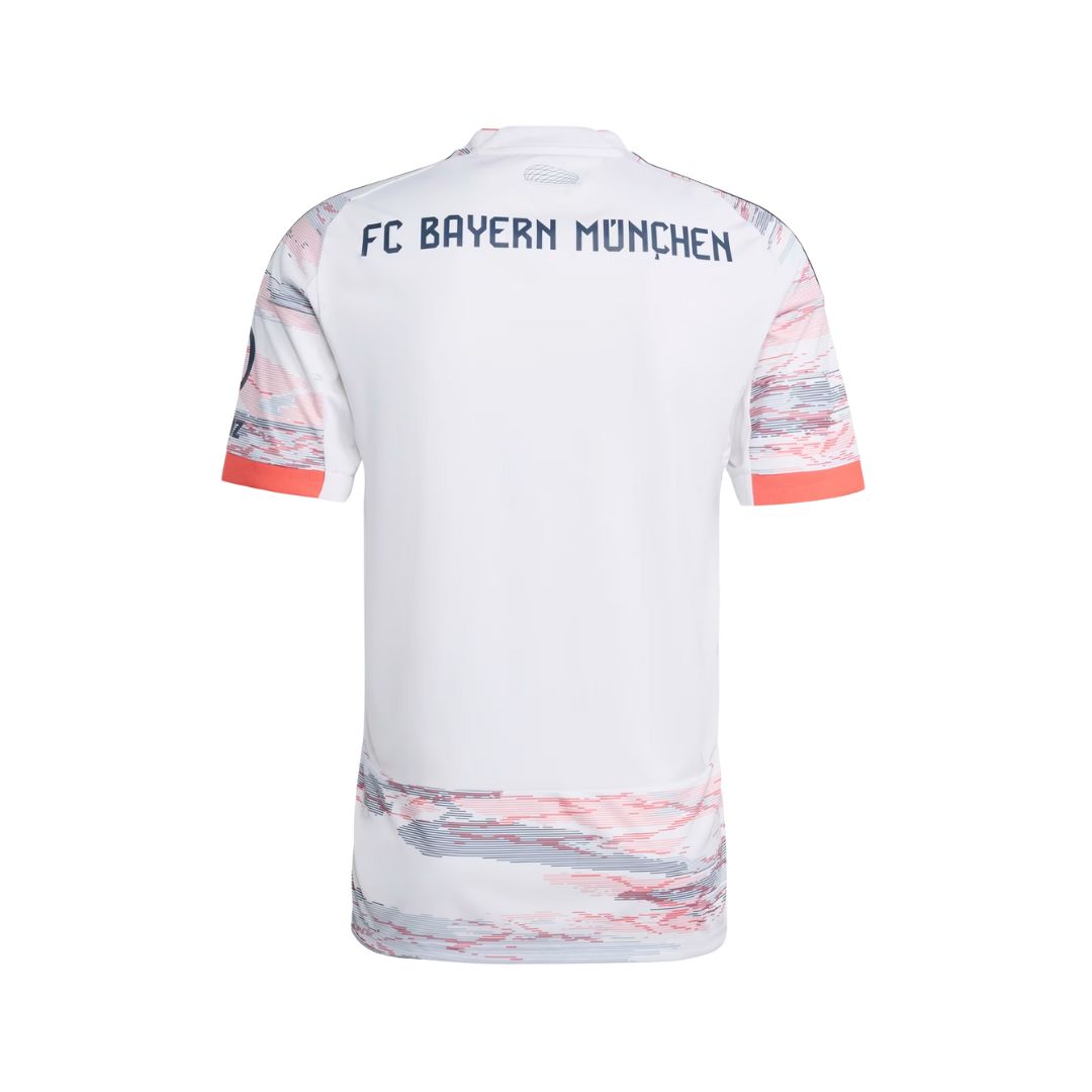 FC Bayern Away Authentic Jersey 2025-26. Glowing with pride. For two decades the Allianz Arena has lit the way to victory for FC Bayern fans. With an eye-catching abstract print inspired by evening games in Munich, this adidas authentic soccer jersey gives players energy on the field thanks to its performance-focused build. A heat-applied club badge on the chest and a small stadium graphic on the back neck show passers-by where you feel most at home.