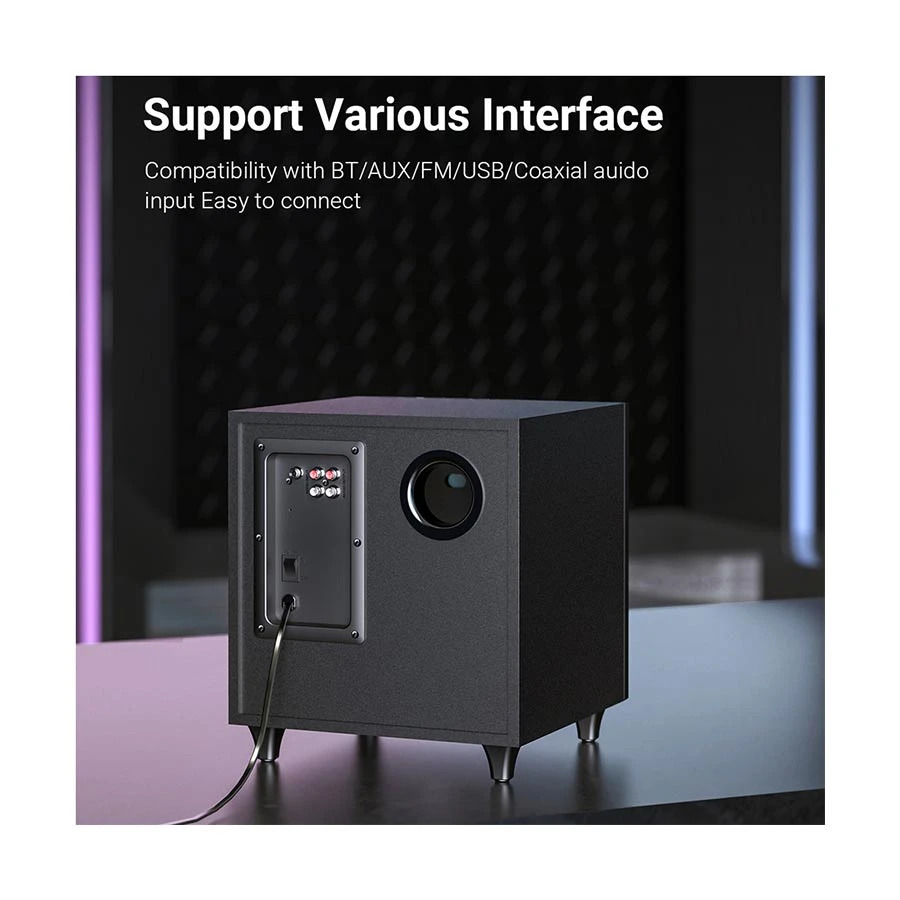F&D F670X 2:1 Bluetooth Multimedia Speaker. Transform your audio. The F&D F670X 2:1 Bluetooth Multimedia Speaker, available at a price in Bangladesh through our Diamu.com. This speaker system features a potent 6.5” driver for the subwoofer, delivering commanding bass that enhances your music, movies, and sessions. With the Bluetooth 5.3 version, enjoy seamless connectivity. The plug-and-play USB reader, which supports MP3 dual-format decoding and audio support through coaxial inputs, offers versatile playback options. The system also allows multi-speakers via BT/AUX/USB/FM/coaxial inputs, providing for your setup. The F670X features an LED display with excellent visibility angles for easy navigation.