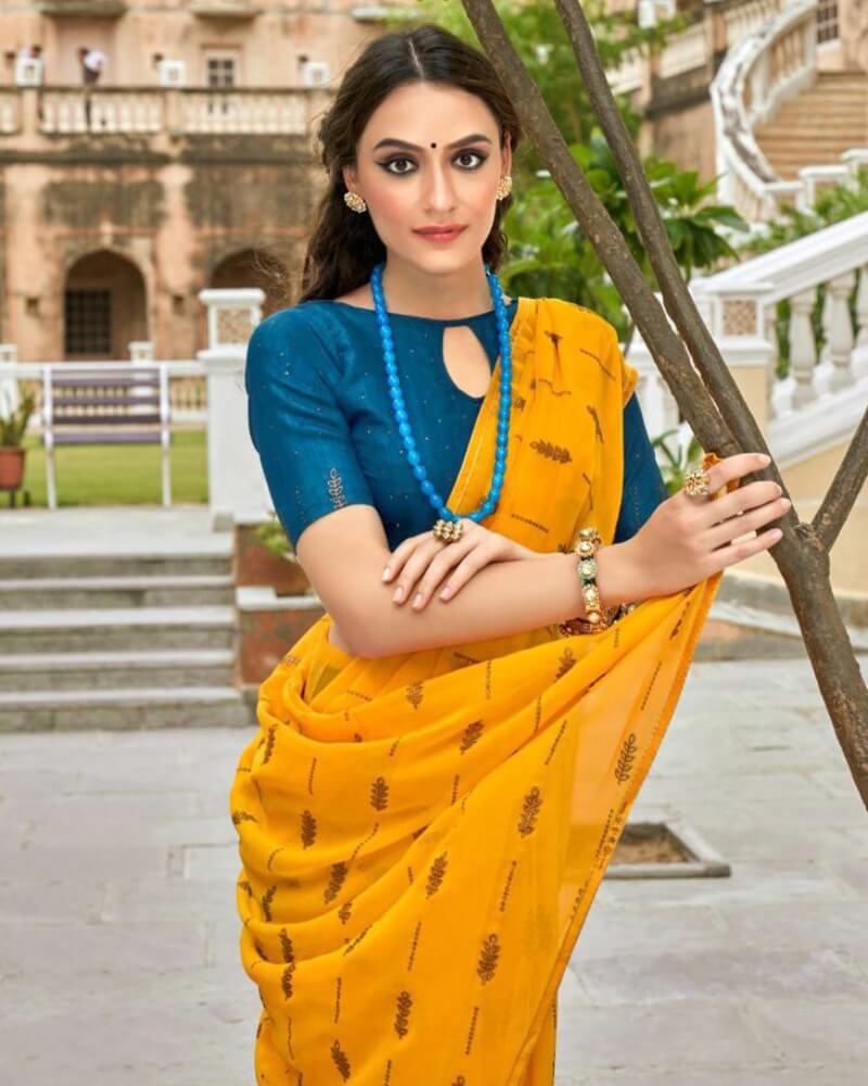 - Saree Fabrics: Georgette with Antique Copper Zari