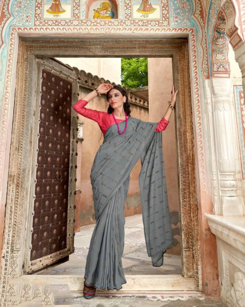 - Saree Fabrics: Georgette with Antique Copper Zari
