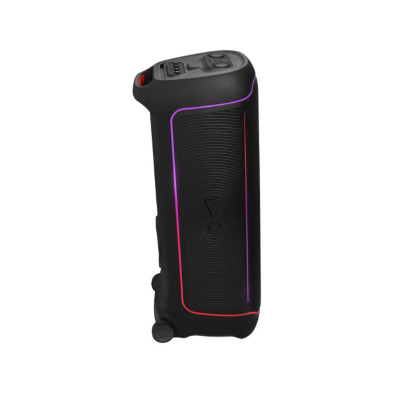 The JBL PartyBox Ultimate can cover a massive space we’re talking two basketball courts—with superior Original JBL Pro Sound. Featuring two drivers and mid range speaker to deliver louder sound. Dual tweeters and a pair of subwoofers means there’s going to be more than enough bass for even the most dedicated fans, while Dolby Atmos provides immersive 3D spatial effects. This is the kind of thunderous sound you’ll not just hear, but feel.