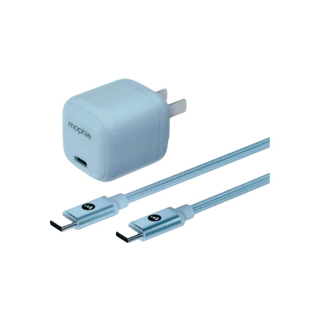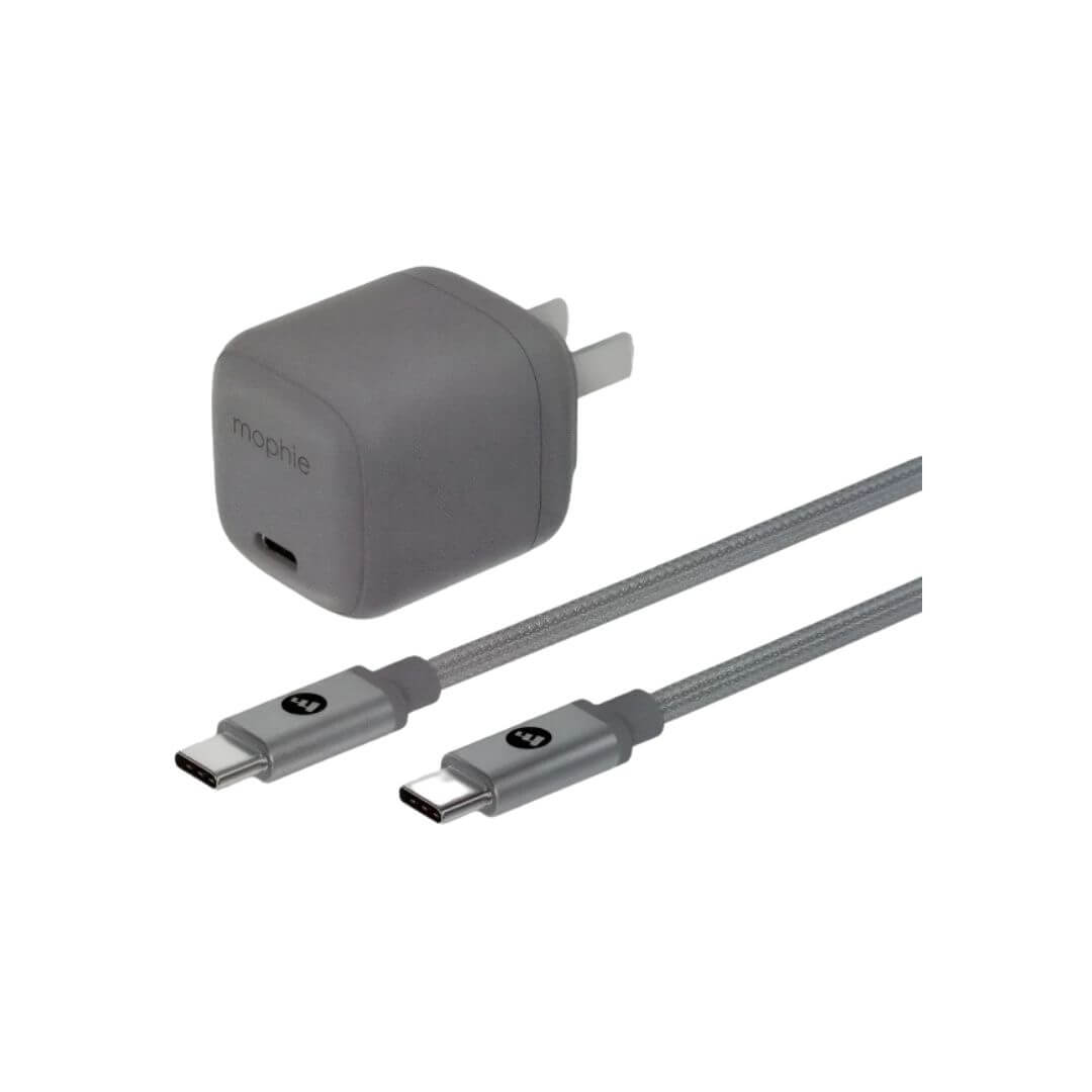 Mophie 30W GaN fast charger + 1M C TO C 60W braided cable. The mophie essentials 30W PD Wall Charger & 1m C to C Cable bundle delivers up to 30W of fast charging power to your portable device. PD (Power Delivery) technology increases charging efficiency and speed, so you get a lot of power in a compact cube that fits easily in your bag or pocket.