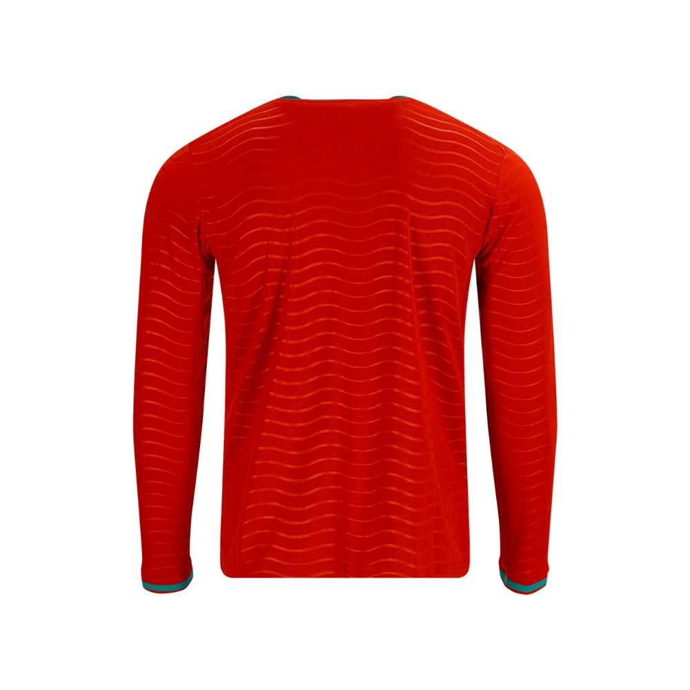 Portugal Full Sleeve Home World Cup Authentic Jersey 2026. The Portugal National Team’s 2026 long-sleeve Home jersey was designed for fans who want to feel the team’s energy in every match. With a comfortable fit it ensures freshness and all-day comfort. The bold red and green design, inspired by ocean waves, reflects national pride and passion for football. Perfect for match days or everyday wear, it’s the ideal choice for those who live the game intensely and support Portugal with pride.