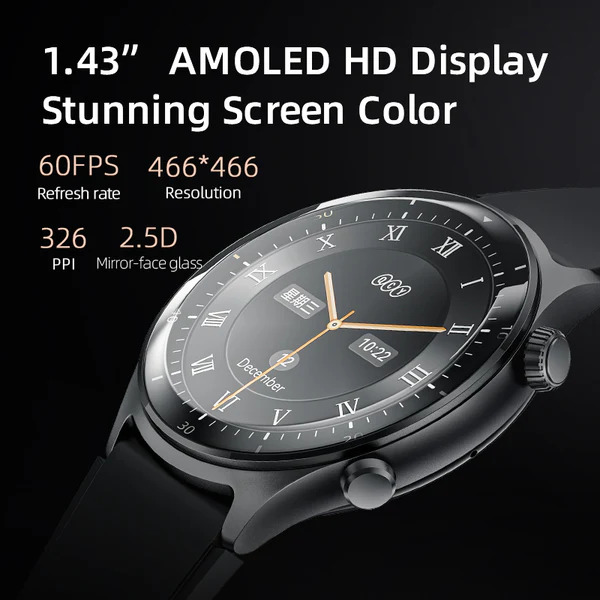 - 1.43” AMOLED HD Display with 466×466 resolution for stunning visuals.