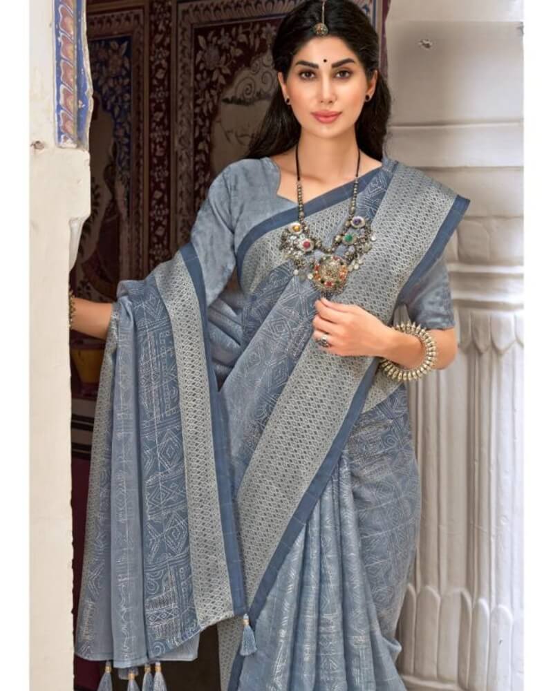 • Saree Fabrics: Tissue Silk with Jacquard Border