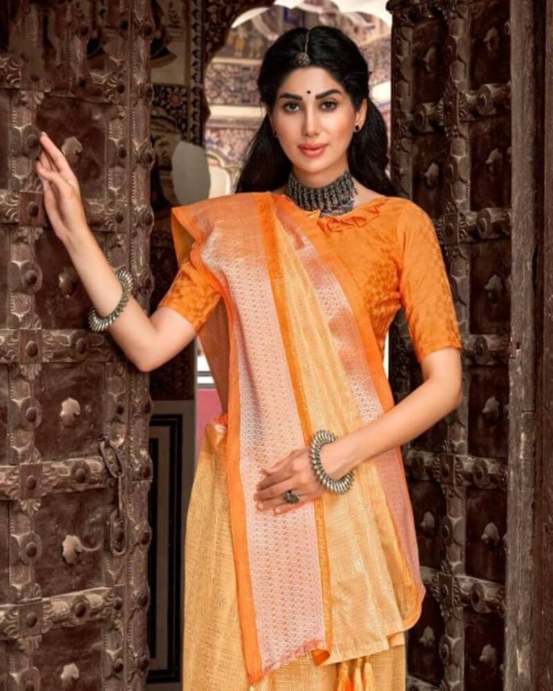 • Saree Fabrics: Tissue Silk with Jacquard Border